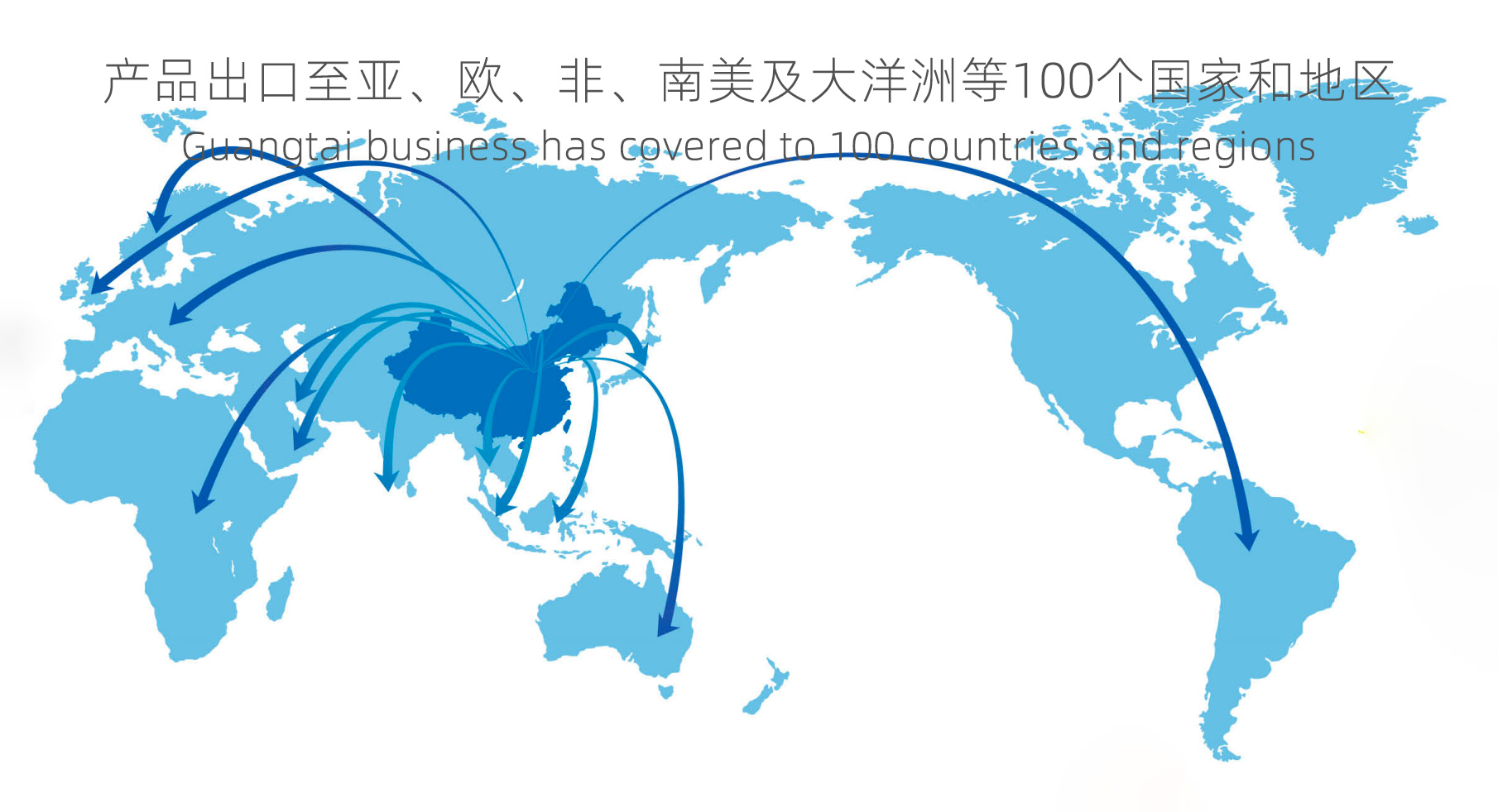 廣泰產(chǎn)品遍布全國(guó)并已出口到亞洲、歐洲、南美洲、大洋洲等100個(gè)國(guó)家和地區(qū)。