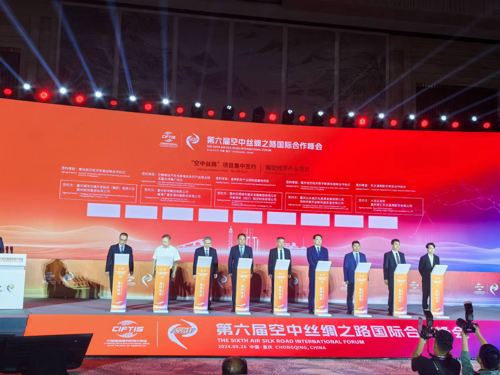 9月26日,威海廣泰空港設(shè)備股份有限公司(以下簡(jiǎn)稱:“威海廣泰”)應(yīng)邀參加在重慶舉辦的第六屆“空中絲綢之路”國(guó)際合作峰會(huì)(ASRIF),營(yíng)銷中心總經(jīng)理羅瑜代表公司出席并與重慶機(jī)場(chǎng)集團(tuán)有限公司(以下簡(jiǎn)稱:重慶機(jī)場(chǎng)集團(tuán))黨委委員、副總經(jīng)理熊德智共同簽署了空側(cè)電動(dòng)汽車充換電站系列產(chǎn)品聯(lián)合研發(fā)暨市場(chǎng)推廣協(xié)議,標(biāo)志著雙方在推動(dòng)民航綠色、智能發(fā)展方面邁出了重要一步。