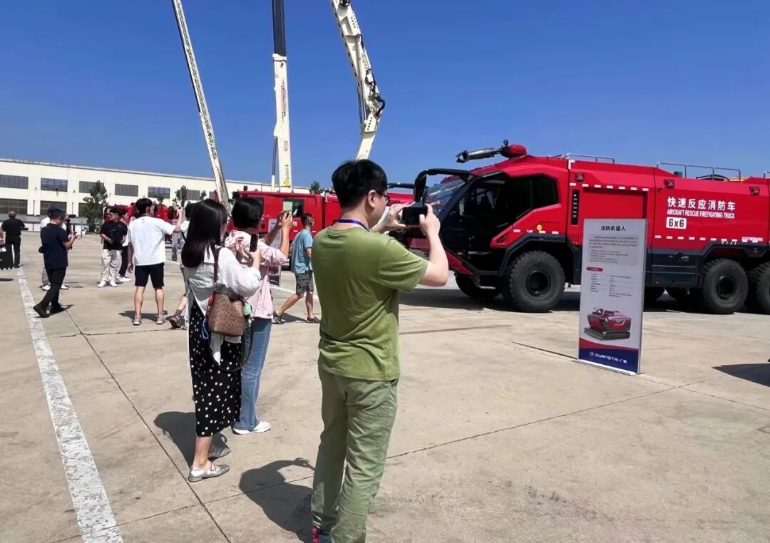 剛踏入威海廣泰的展廳,采訪團(tuán)成員便被眼前的景象所吸引。展廳內(nèi),飛機(jī)牽引車、平臺(tái)車、消防車、應(yīng)急救援無人機(jī)等多款產(chǎn)品整齊有序地陳列著,金屬外殼在燈光的映照下泛著光澤,每一款設(shè)備都透著滿滿的科技感。