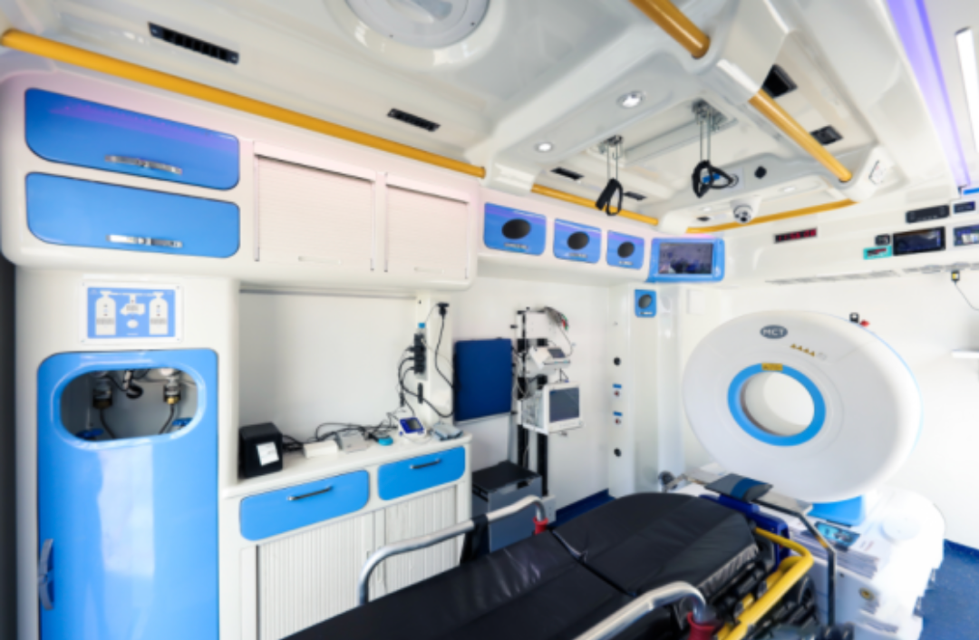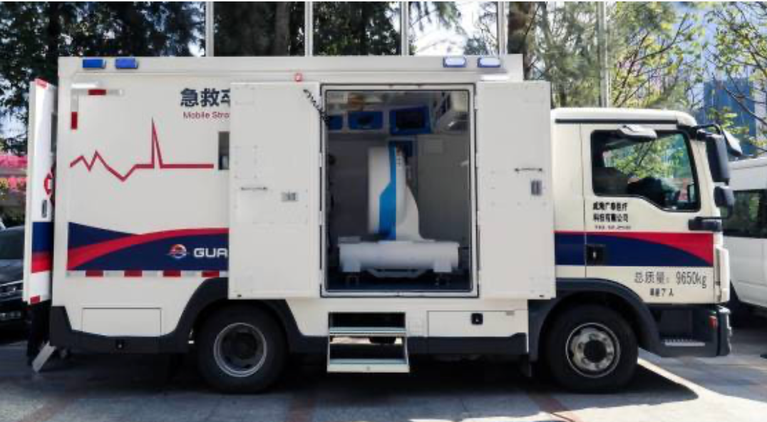 5G移動卒中單元是將移動CT和相關(guān)的檢驗儀器配備在救護車上,在5G網(wǎng)絡下,形成集神經(jīng)癥狀學檢查、CT診斷和靜脈溶栓治療為一體的救治單元。